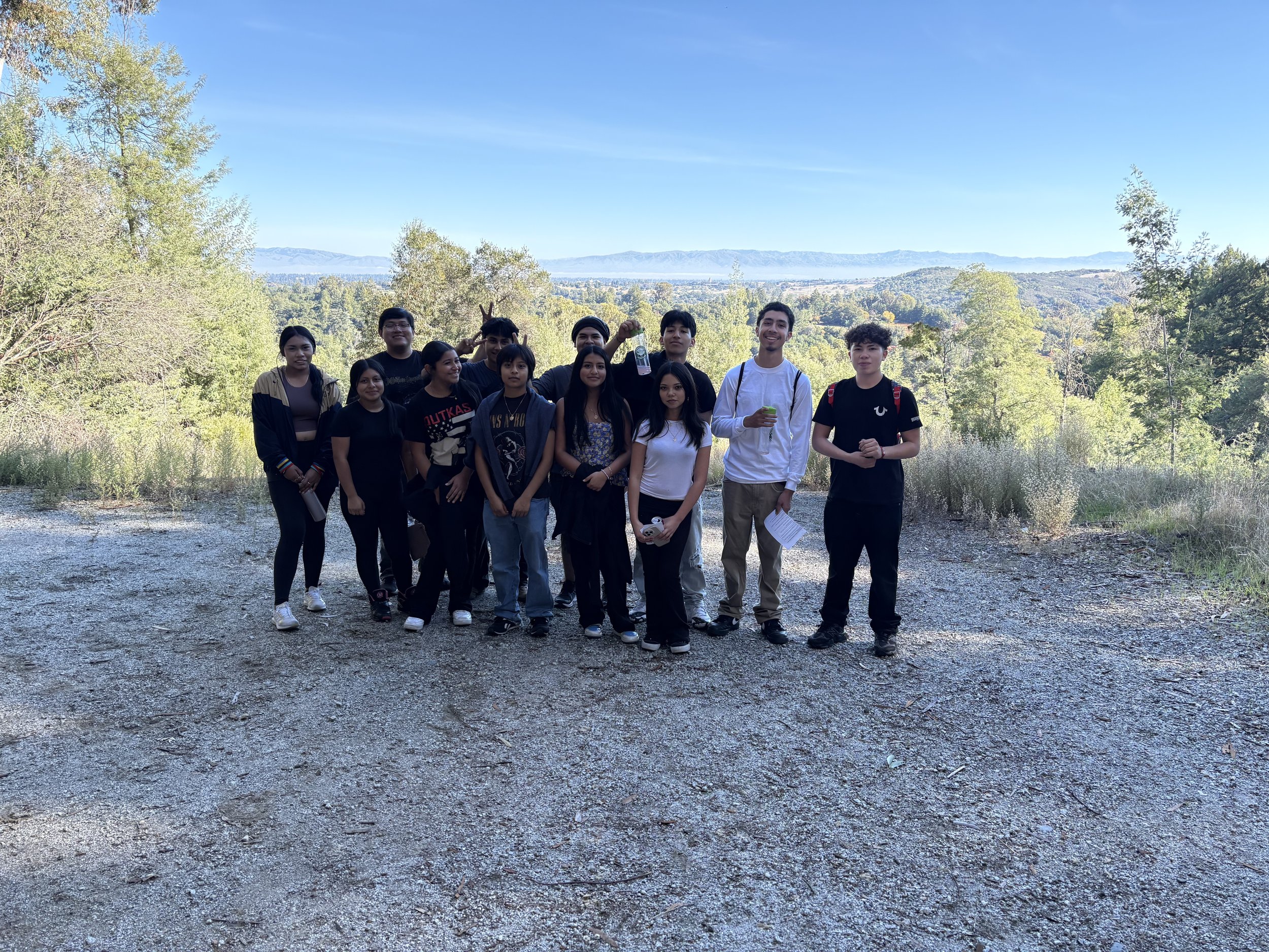 Youth participating in a guided hike of Huddart Park with San Mateo County Rangers.